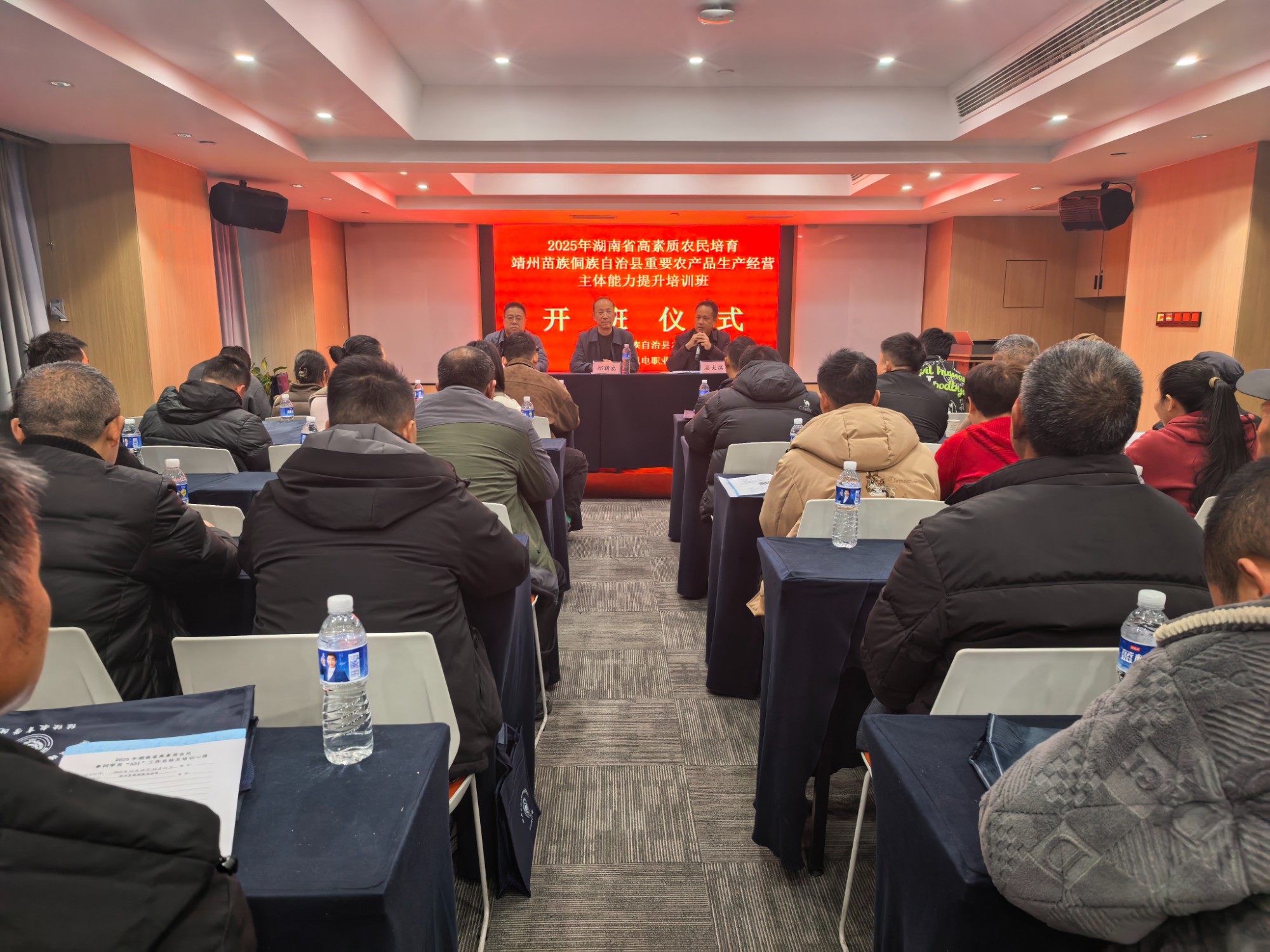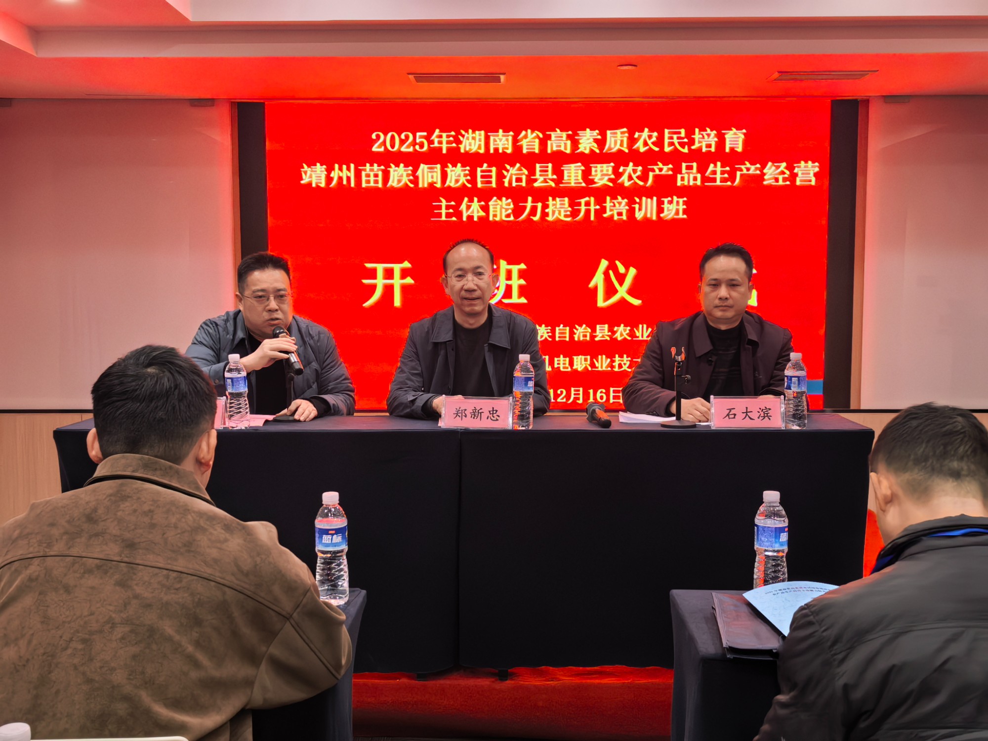 12月16日,由靖州苗族侗族自治县农业农村局主办、湖南生物机电职业技术学院承办的2025年湖南省高素质农民培育靖州县重要农产品生产经营主体能力提升培训班在学校培训基地举办。学校继续教育学院院长郑新忠、靖州县农业农村局乡村建设和社会事业促进股石大滨和来自靖州县的50名农业产业发展带头人参加了开班仪式。开班仪式由学校继续教育学院副院长陈小勤主持。